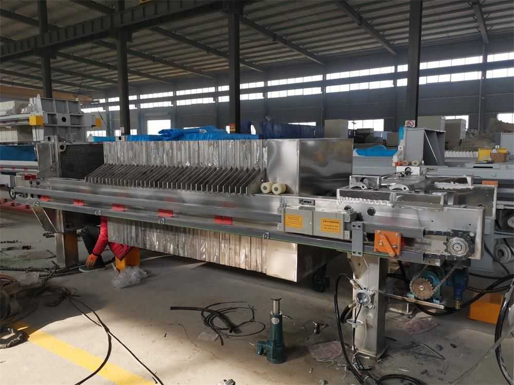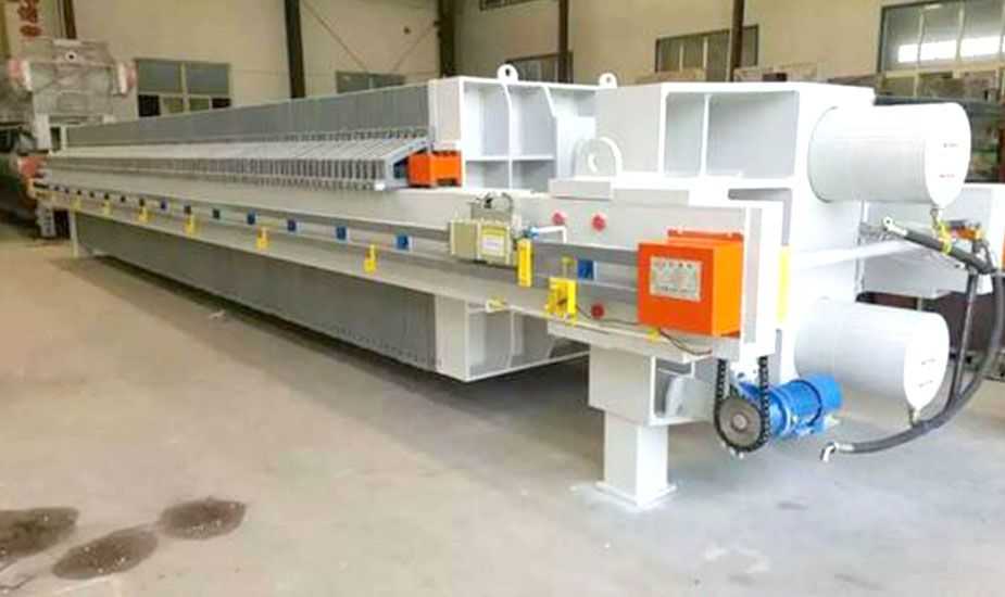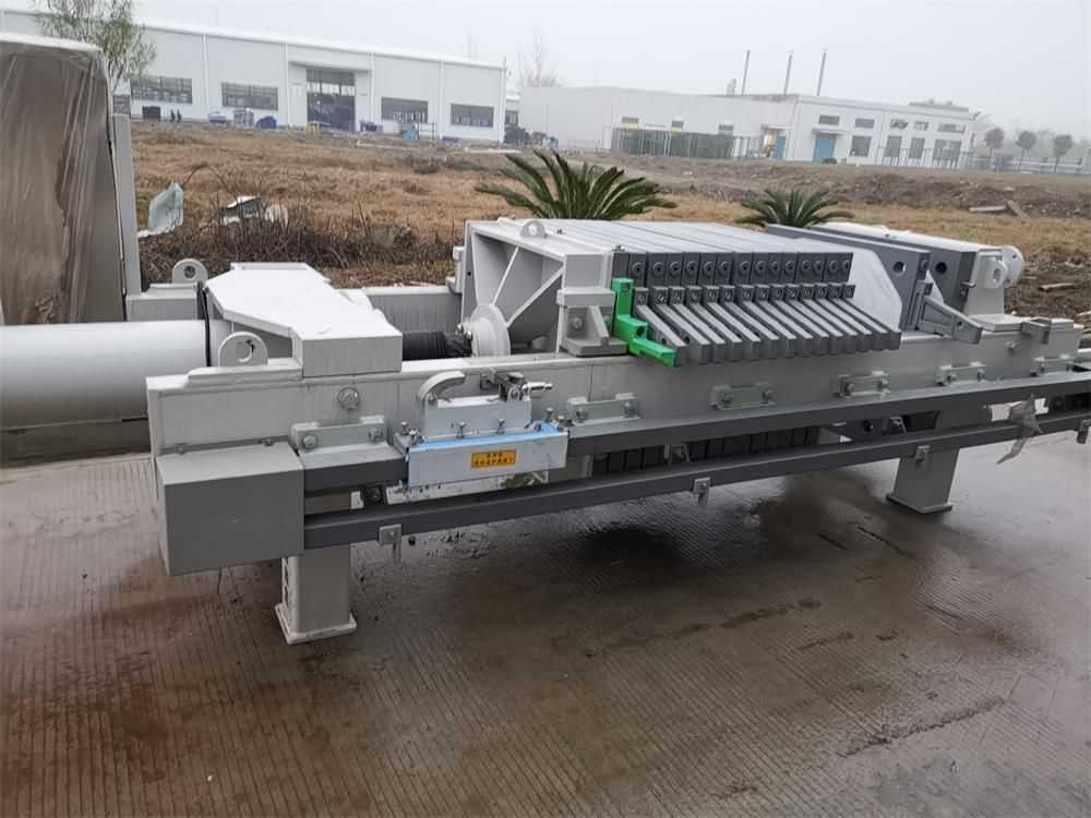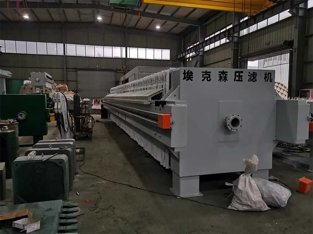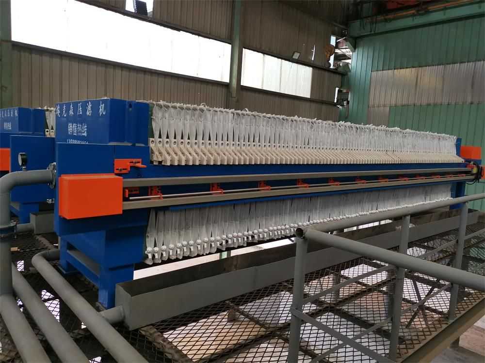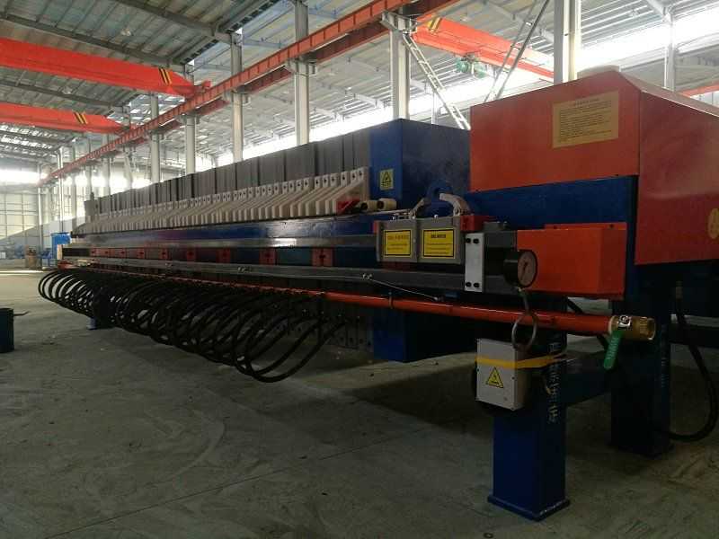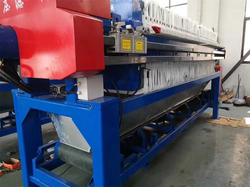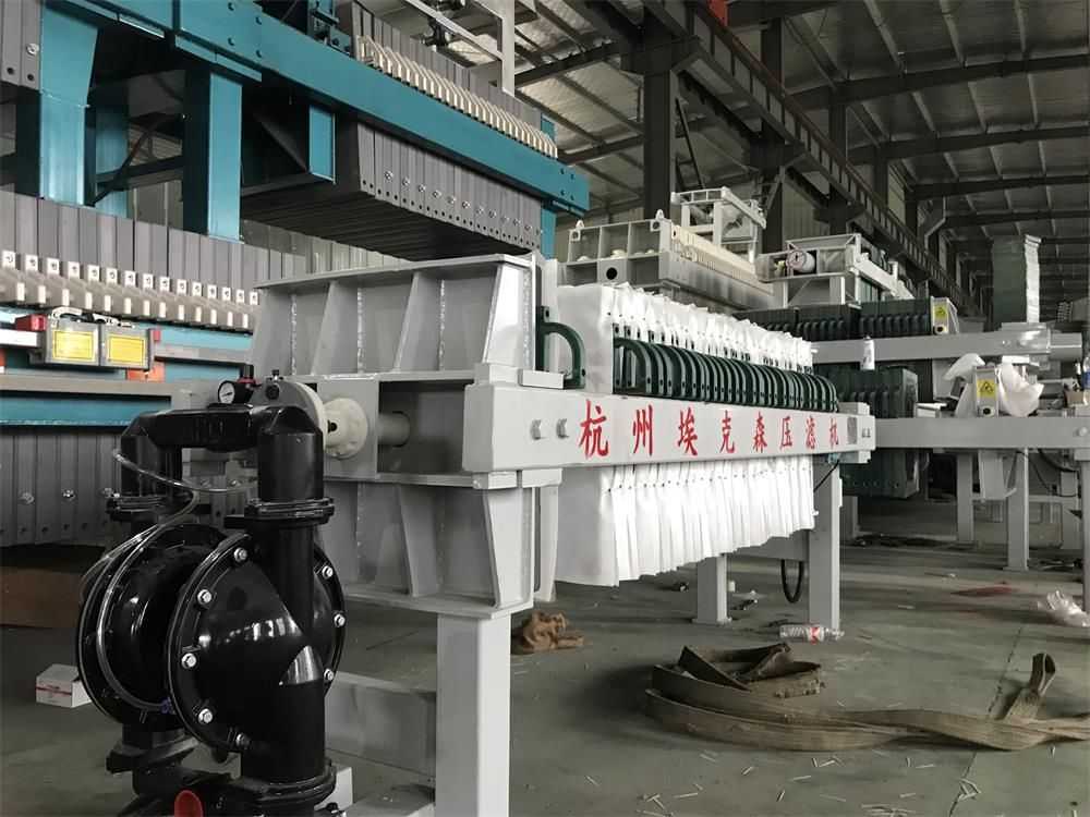 隔膜壓濾機(jī)和常規(guī)箱式壓濾機(jī)的主要區(qū)別在于,在濾板的兩側(cè)都增加了兩個(gè)彈性膜(復(fù)合橡膠膜是一個(gè)整體式膜。在操作期間,當(dāng)進(jìn)料完成時(shí),將高壓流體介質(zhì)注入膜中,并使整個(gè)膜膨脹以過濾濾餅,以進(jìn)一步使濾餅脫水,這是壓力過濾。在隔膜壓濾機(jī)運(yùn)行期間,液壓系統(tǒng)使用液壓油作為壓力載體來傳遞內(nèi)部壓力。